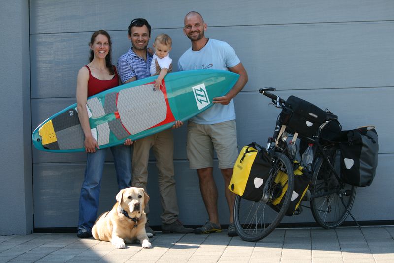 Der Weinregion folgend erlaubt der Radweg, fernab der Straße, durch die Wohngegenden einen interessanten Einblick in das Leben der Menschen- beim Unterhalten mit den Nachbarn, Reparieren, Sitzen, Kehren, Spazieren gehen, Rasen mähen. Die Kondition wächst im Vergleich zu den ersten Tagen spürbar und jeder bewältigter Anstieg verschafft einem Selbstvertrauen für die Umsetzung des Projekts. Nach 276km erreiche ich das Haus meiner Freunde Ellen und Markus mit Ihrem Nachwuchs Lasse im Pfinztal. Der Kontakt besteht schon seit längerer Zeit, da wir gemeinsam in Afrika gereist sind. Diese Zeit liegt jedoch schon 5 Jahre zurück. Und so kam es, dass ich beim Lesen Ihrer Adresse des Pfinztals eine lässige Bergabfahrt im Kopf abspeicherte. Wo ein Tal ist, da befindet sich allerdings auch ein Berg. Ellen und Markus sollten an dessen höchster Stelle wohnen! Beim herzliche Zusammensein wurden viele Neuigkeiten ausgetauscht, alte Geschichten erzählt und eine große Abendmahlzeit bescherte neue Kräfte für die Tage. Es war ein schönes Wiedersehen. Hoffentlich dauert es nicht wieder 5 Jahre!