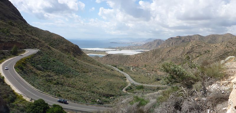 Ab hier (unweit südlich von Cartagena) beginnt die Befpflasterung der Landschaft mit den Plastikgewächshäusern (siehe weiße Flächen).