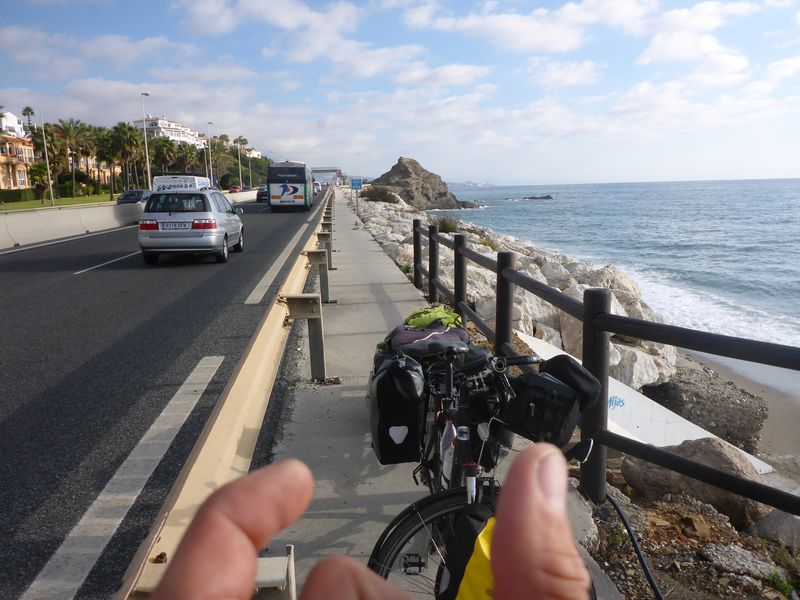 Die Fahrbahn nach Marbella wird immer kleiner. Kein Wunder wer dort hinfährt hat meistens genügend Geld und ist auf einen Fahrradweg nicht angewiesen.
