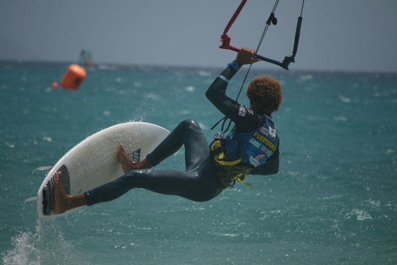Gemeinsam besuchten wir den Strapless Kiteboarding World Cup in Sotavento im Süden Fuerteventuras. Airton Cozzolini, Matchu Lopez & Co. gaben sich die Ehre. Mit Surfbrettern ohne Fußschlaufen (=strapless) und Kite zelebrierten sie waghalsige Tricks bei sehr rauen Windverhältnisse mit über 40 Knoten. Am Ende stand Airton Cozzolini auf dem Siegerpotest ganz oben. Mit einen spektaluären Trick (crazy horse), mit dem Brett zwischen den Beinen geklemmt und kiteloopend durch die Luft fliegend, schaffte er die Wende im Finale gegen Matchu Lopez.