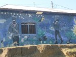 Schockierend! Von Kinderhand gemalte Guerillakrieger mit Waffen an der Schulhauswand.