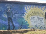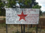 Schild in Chiapas: Die Erde gehört dem, der sie bearbeitet. Fur sie (die Erde) werden wir leben und sterben. Nein zur Autobahn. Es lebe die Zapatisten. Der Kampf geht weiter.