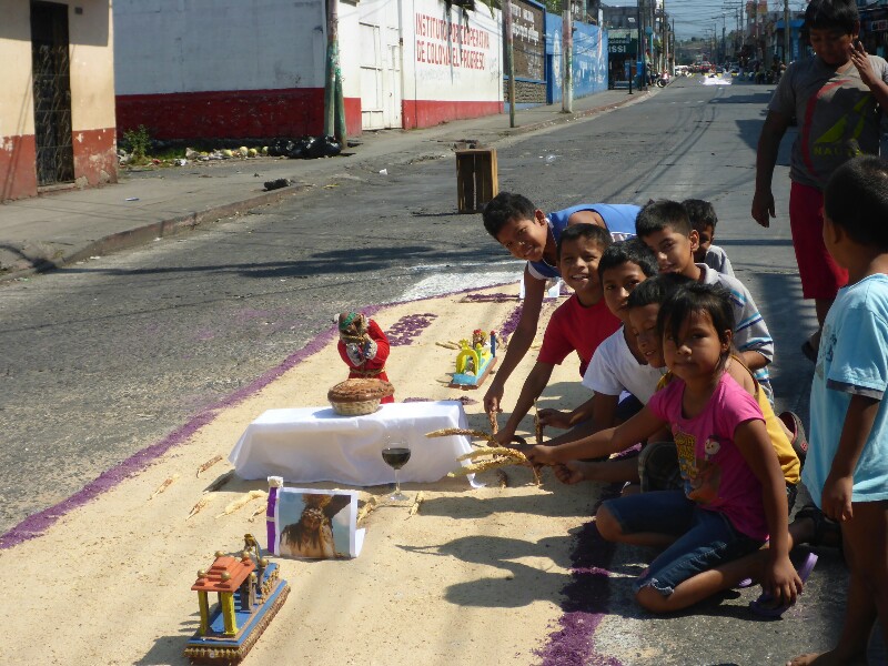 Sogenannte Teppiche, die in vielen Stunden präpariert werden, zieren in der Osterzeit für die Prozession die Strassen